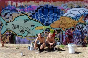 The day before I left Oregon, with all my fishing gear packed up, I spent some quality time with my younger brother painting fish on a public graffiti wall. Guess who painted the carp?