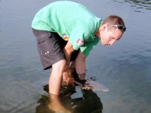 Finally some action! I have been so close to successful the last few times I’ve gone carping – the fish would show interest by approaching my flies, but then at the last second, with no regard for my feelings, they would just pass up my offering. Thinking it might be leader shyness, I decided to tie on a 6X tippet for my next attempt. For you non-fishing folks, the tippet is the very end of the line, onto which I tie my fly, and 6X means that the tippet is very very thin and nearly invisible, but also not very strong, so one must be gentle when playing fish.