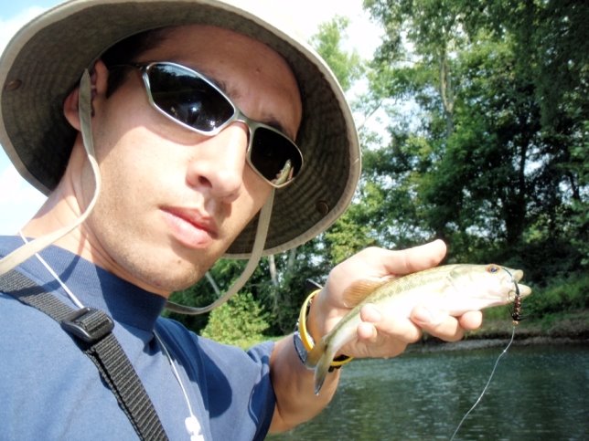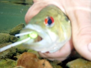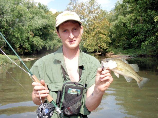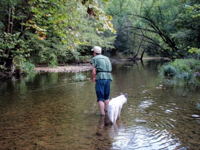Mike hadn’t been to the stream in years and was suprised at the changes. Erosion had widened the streambed which meant shallower water and so the big bass of his youth had moved on to new homes. There were still some fish and we had fun wading from pool to pool, catching fish where we could: