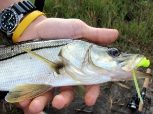 In the late afternoon I pulled out the spinning rod and rigged up a large popper. I didn’t know what to expect but I was fortunate and landed my first ever snook!
