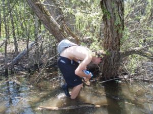 In particular I wanted to find fish spawning near some good submerged vegetation, something the fertilized eggs would adhere to so I could collect them easily. Something like the roots at the base of a tree: