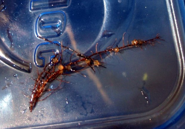 I collected a strand of fine tree roots with perhaps 100 eggs on it and set it in my tank: