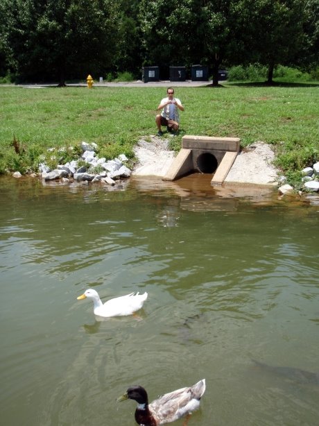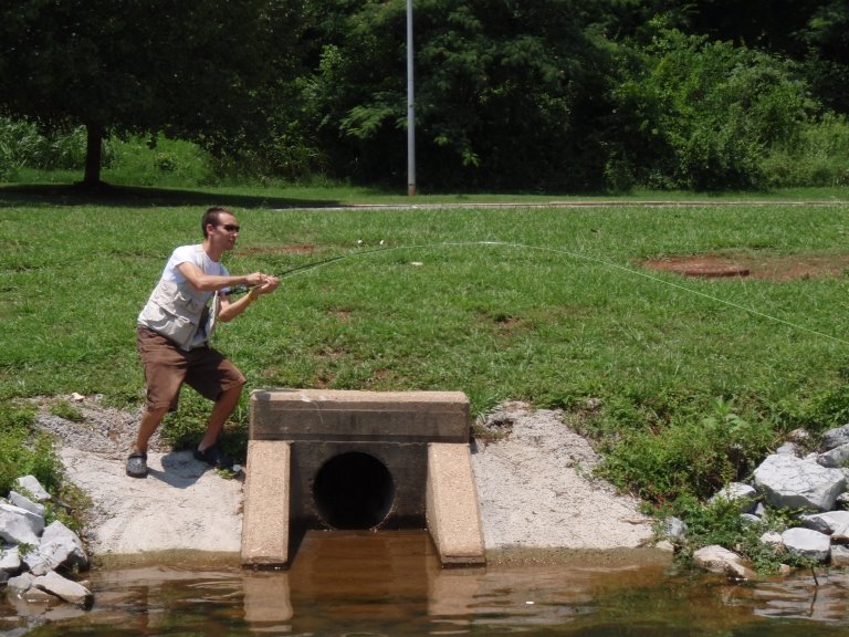 On the way back to Nashville, we stopped by a lake for a picnic lunch. I was hoping to hook a few bluegills after we ate, but the shoreline didn’t look very fishy. I commented as much, and our friend Heather, a Tennessee native, replied that she knew of a nearby spot where people fed bread to big carp. That got my attention and as soon as I finished eating I ran off to look for these hungry fish.