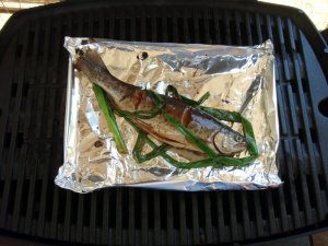 My brother Noah had requested fresh fish for lunch so this unfortunate little hatchery fish went straight from the river…