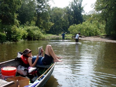After breakfast we traded the big pontoon boat for the small jon boat and headed up David’s secret bass stream: