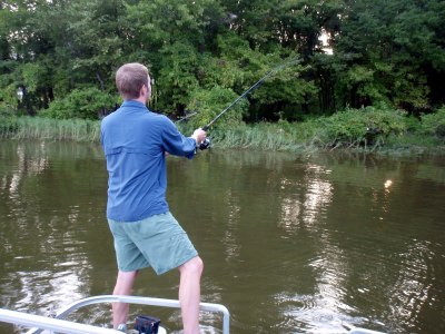 On the way out we spotted the three lost jug lines. One bait was intact, and more or less where we had placed it the night before, but the other two jugs had clearly been pulled out of position. One line was cut above the hook, a sure sign that something had been on it. The final jug had a fish on! It felt like a decent sized catfish, but unfortunately the line had been badly abraded and snapped as soon as I put tension on it.