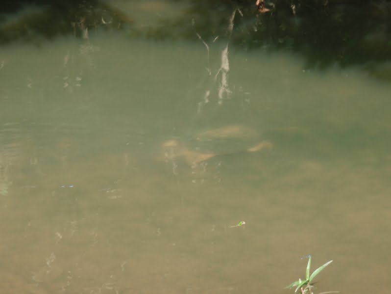 Besides hooking oneself, freshwater fishing has a number of other hazards. I ran across two of Tennessee’s more dangerous residents this morning – the dreaded denizen of the deep, the snapping turtle (look closely, it is there):