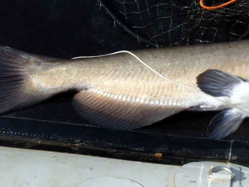 I’m pretty sure this is a big channel catfish. Though big channel cats are hard to distinguish from blue catfish, blues often have more than 30 rays on their anal fin. This fish only has about 23: