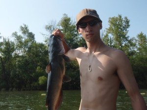 I grabbed the jug and hauled it in. Hoping for a carp and expecting a turtle, I was thrilled to see I had caught a big ol’catfish: