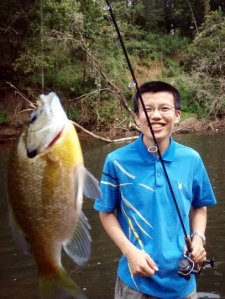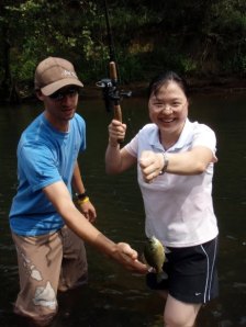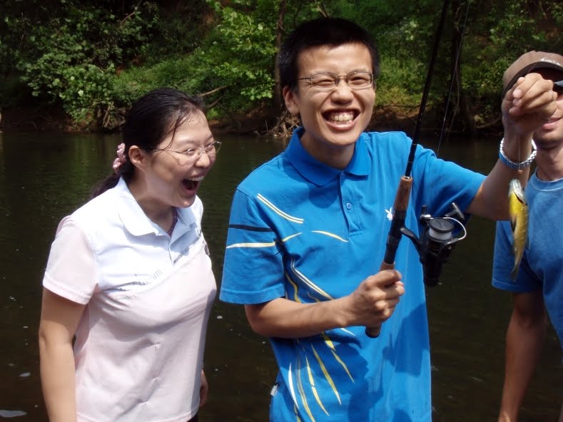 Labor Day weekend, Tara and I took three of our friends fishing. Heather has been fishing with us before, but she had never actually caught a fish. Hang and Dapeng, two of our friends from China, had never even been fishing.