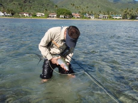 I have fished for o’io perhaps half a dozen times in Hawaii, with very little luck. Even when the fish are all around, and the conditions are good, I can’t get them to eat. I’ve tried fly fishing and bait fishing and I’ve fished all around the island. I have hooked plenty of fish, wrasses, hawkfish, cornetfish, but never a bonefish.