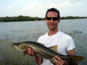 After an exciting nearshore battle with the fish I finally got the upper hand and managed to beach it:A nice big snook! I was very pleased. Snook were among the hardest hit species during the cold snap. In fact, snook season has been called off – it’s strictly catch and release until Fall when Florida Fish and Wildlife will review stock assessments.