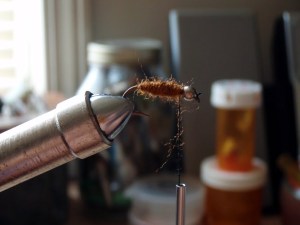 With some advice and inspiration from the Ronnie at the fly shop I sat down at the vice. First I tied a very simple bead-head nymph: