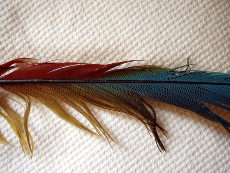 A few days later I received an envelope with no letter. Instead, it contained a single flight feather from a macaw!