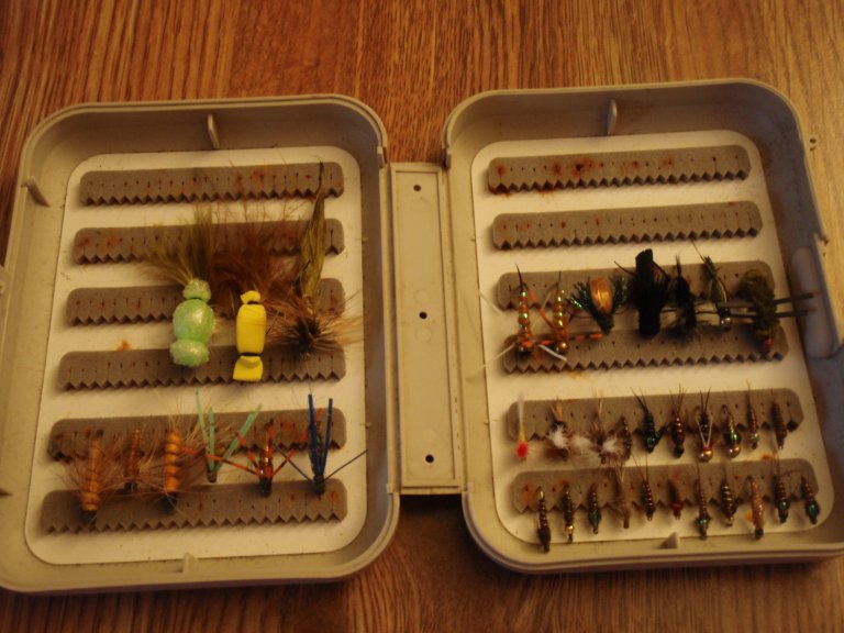 Above is my back-up box, it holds 90% of my flies and usually sits unused for most of the year. The box I actually carry on my person when I fish looks like this: