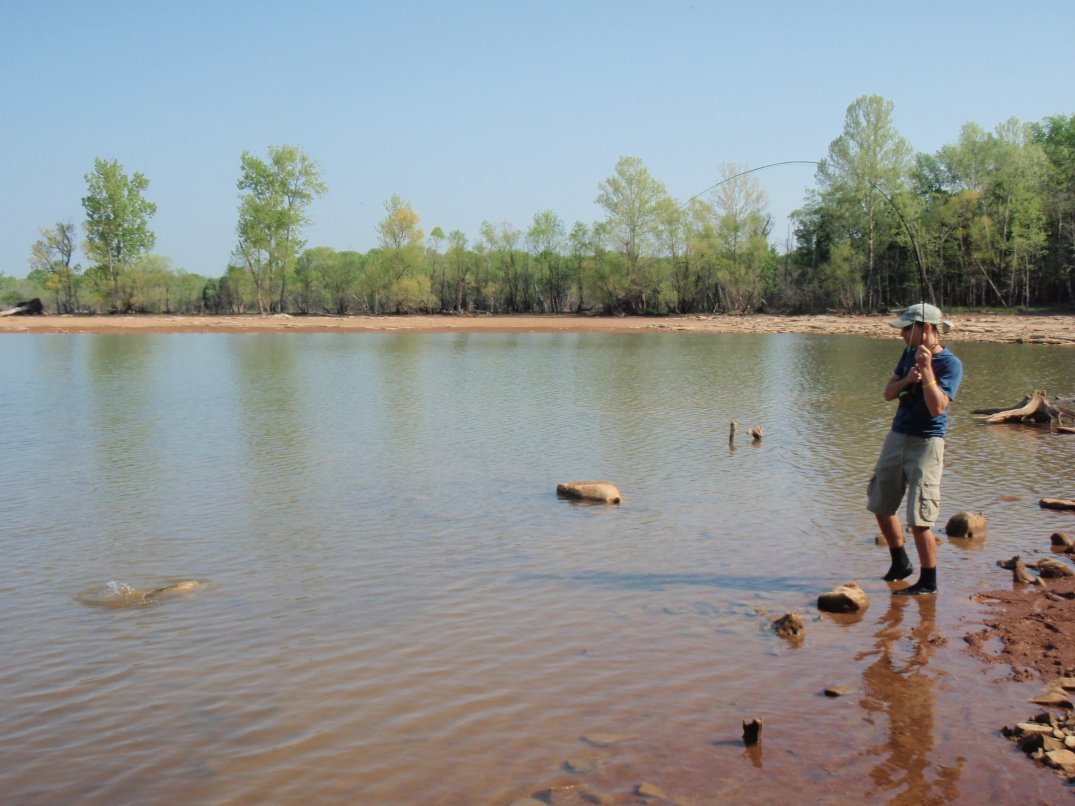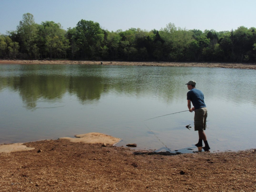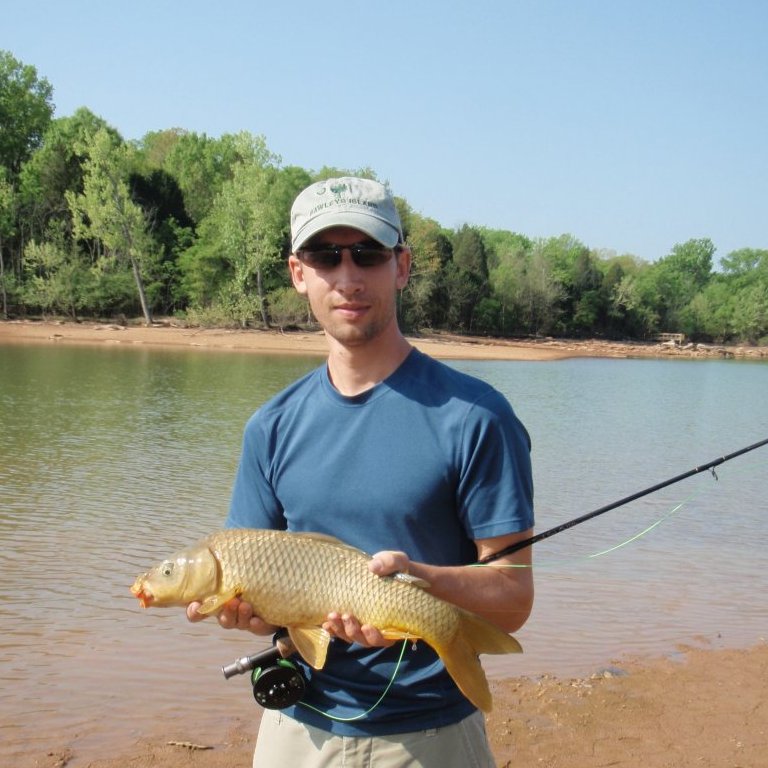 I made my way slowly along the shore of the small bay, scanning carefully for fish feeding amongst the submerged rocks. I spotted a cloud of mud and froze. Soon I saw the back of a nice fish rising slowly out of the murk. I waited until it began to swim lazily away and laid a cast alongside, placing the fly just ahead and to the side of it’s nose. The carp scooted forward, paused ever so briefly, and then my line went tight!