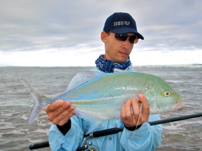 I have been fishing with my friend Kirk for more than a decade.  During that time we have fished all over Oahu; on sandbars, reefs, flats, docks, streams, lakes, bays and islands.  We have caught everything from tiny native gobies to hammerhead sharks.  Just before New Year’s I had a chance to join Kirk for an afternoon of papio fishing.