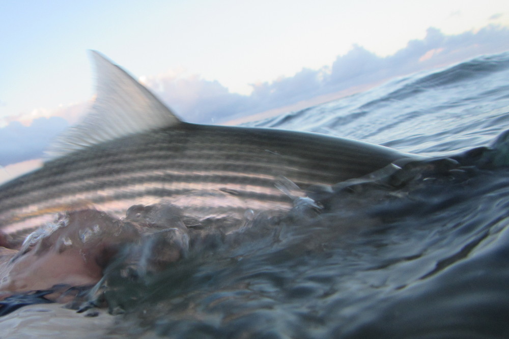 I finally decided to embrace the overcast skies and went out early one morning with some bait and my light-tackle rod. I was able to make my way by memory to a large, sandy pocket in the reef where I know bonefish often hold. Sure enough, within a minute I felt the “tap-tap” of a bonefish picking up my bait.