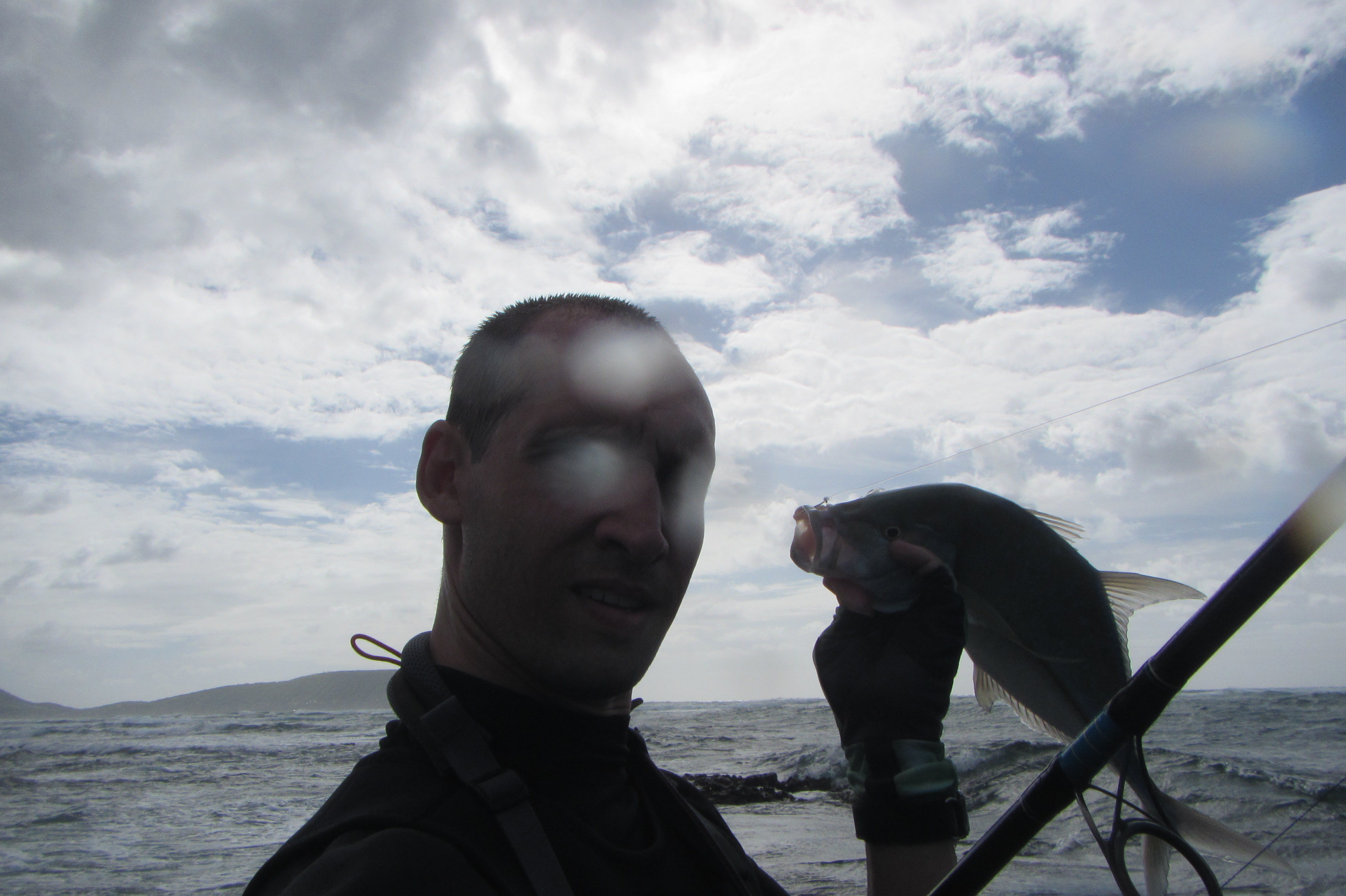 I still have pictures to post from Oregon but I thought I’d put up a few words about this morning’s papio fishing. A nice low tide in the morning and a small south swell looked like prime conditions for getting out in the surf. Of course it wasn’t as easy as all that. The wind advisory from yesterday may have ended but someone forgot to tell the wind about it. The east swell was also making an appearance by wrapping around and frothing up my favorite spots.