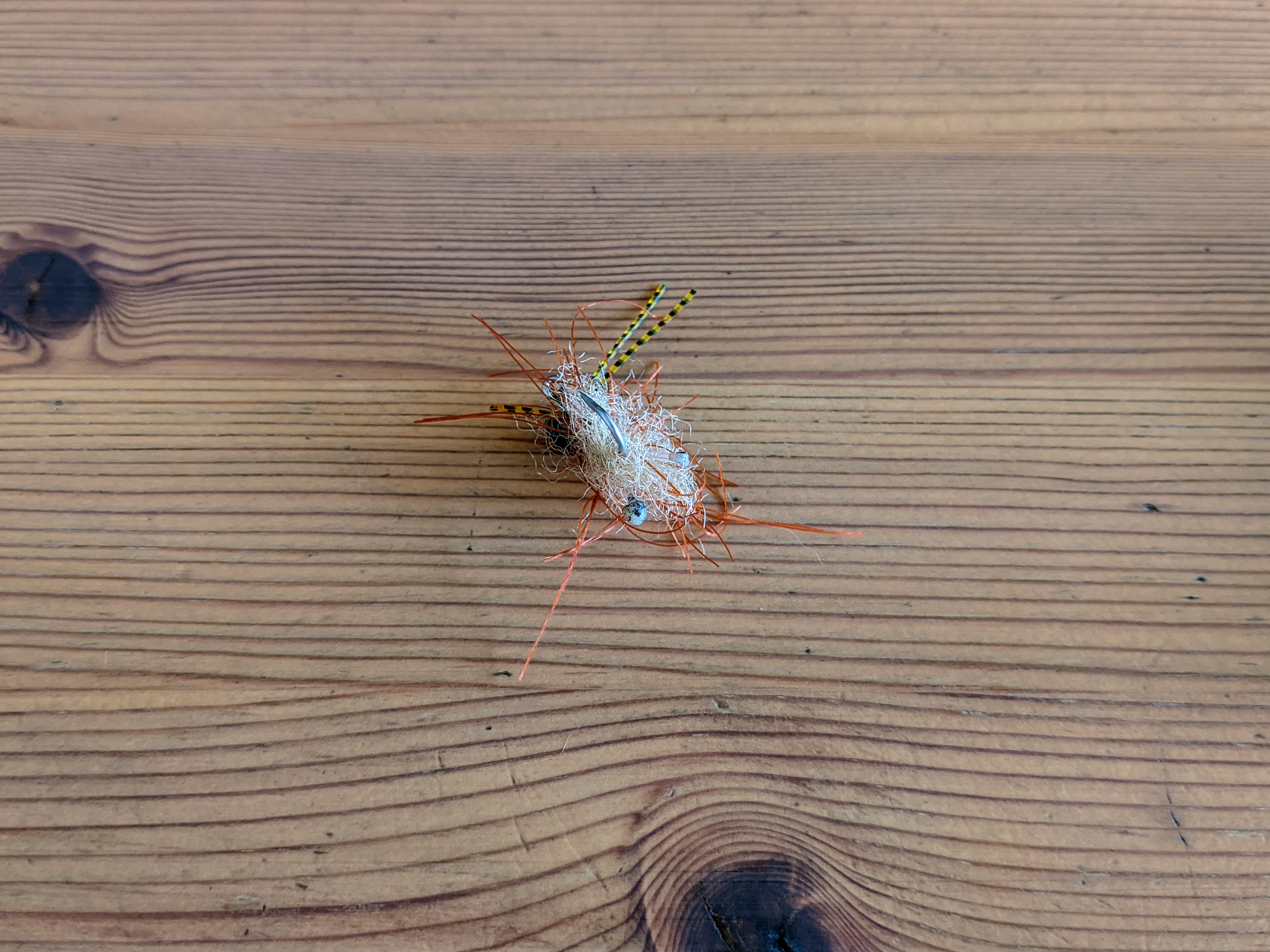 The tide was rising and the water was getting a bit dirty and there were very few fish up on the flat. Soon, we were telling fishing stories and only half looking for fish. I asked Ed about Christmas Island (that’s Kiritimati Island, not the one in Australia, just in case you want to Google it). Ed was telling me about seeing packs of giant trevally on the sand flats there. Ed first thought they must be quite small, but his guide shook his head and said they were upwards of twenty pounds each, just very far away. He described how the pack approached head on, only turning left or right once they were in casting distance. As we slowly approached the opposite edge of the flat, I spotted a fish out of the corner of my eye. It looked a bit too green to be a bonefish but I knew there wouldn’t be another chance to catch something before we floated into the channel. I was still listening intently to Ed, imagining a pack of big GTs, black against the white sand, and not at all worried about catching this strange, green fish, so my cast came off quick and relaxed and the crab fly landed gently a few feet in front of it. Ed had also been engrossed in his story and did not see the fish until he followed the line of my cast, then things got a little crazy. “It’s a golden” He yelled. I twitched my fly and the fish on the edge started forward, but it was a second fish, obscured from me by Ed standing at the other end of the boat, that rushed into view and grabbed the October crab first.