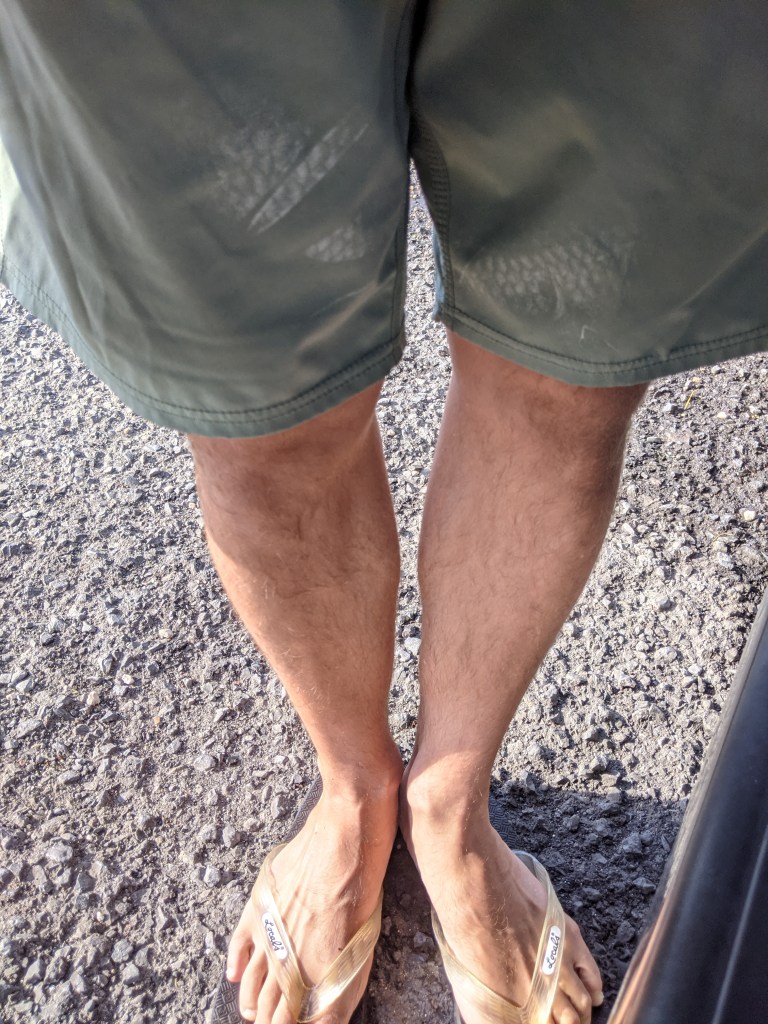 Together with a couple of buddies, I hit the flat for a mid December session. The tide was mediocre in the morning but improving throughout the afternoon. The conditions were fishable, but far from great. The winter temperatures had already reduced the numbers of fish we were seeing, and catching, on a daily basis, so I waded out with low expectations. Predictably, I got off to a slow start, spooking the few fish that I found, but sometime after noon, the tide started to improve and I started to see fish. Then I started to hook them. I lost the first few, and then landed one near the remnants of a mangrove cluster. I hooked another, lost my fly, tied on a different pattern and then kept on catching. At the end of the day I had hooked seven bonefish. I was pretty pleased to improve my record by one, and very surprised to have done so in the middle of December. When We got back to the ramp I noticed that one of the fish had left a natural gyotaku, printed in fish slime, on my shorts.