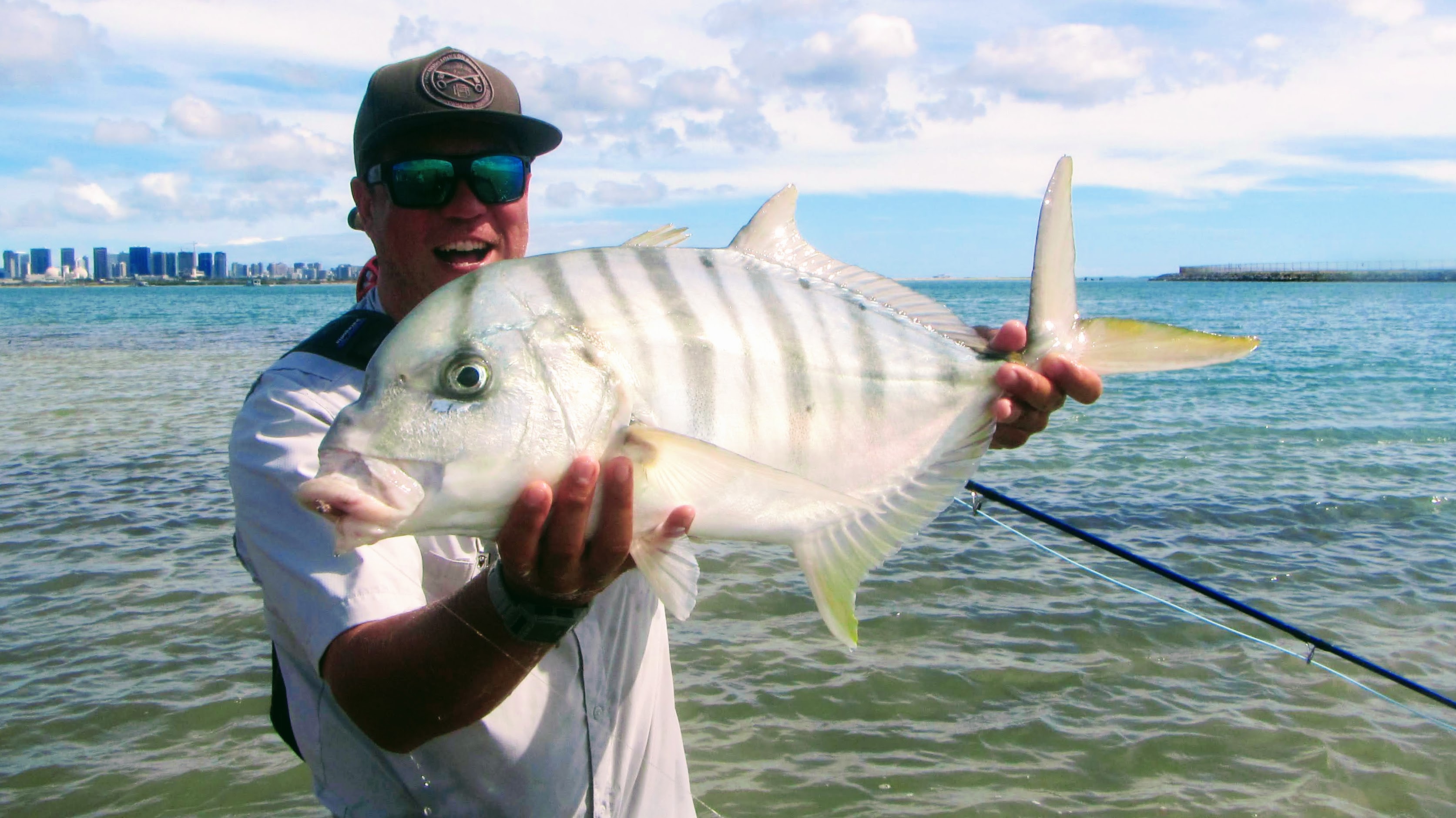 Although this last item was really more of a Halloween surprise, I wanted to give a shout out to Captain Chris Wright who hooked in quite a nice present. All of the regulars had been consistently spotting a golden trevally feeding along a reefy edge of the flat. I had made a few casts to it, as I imagine others had, but no one had caught it.