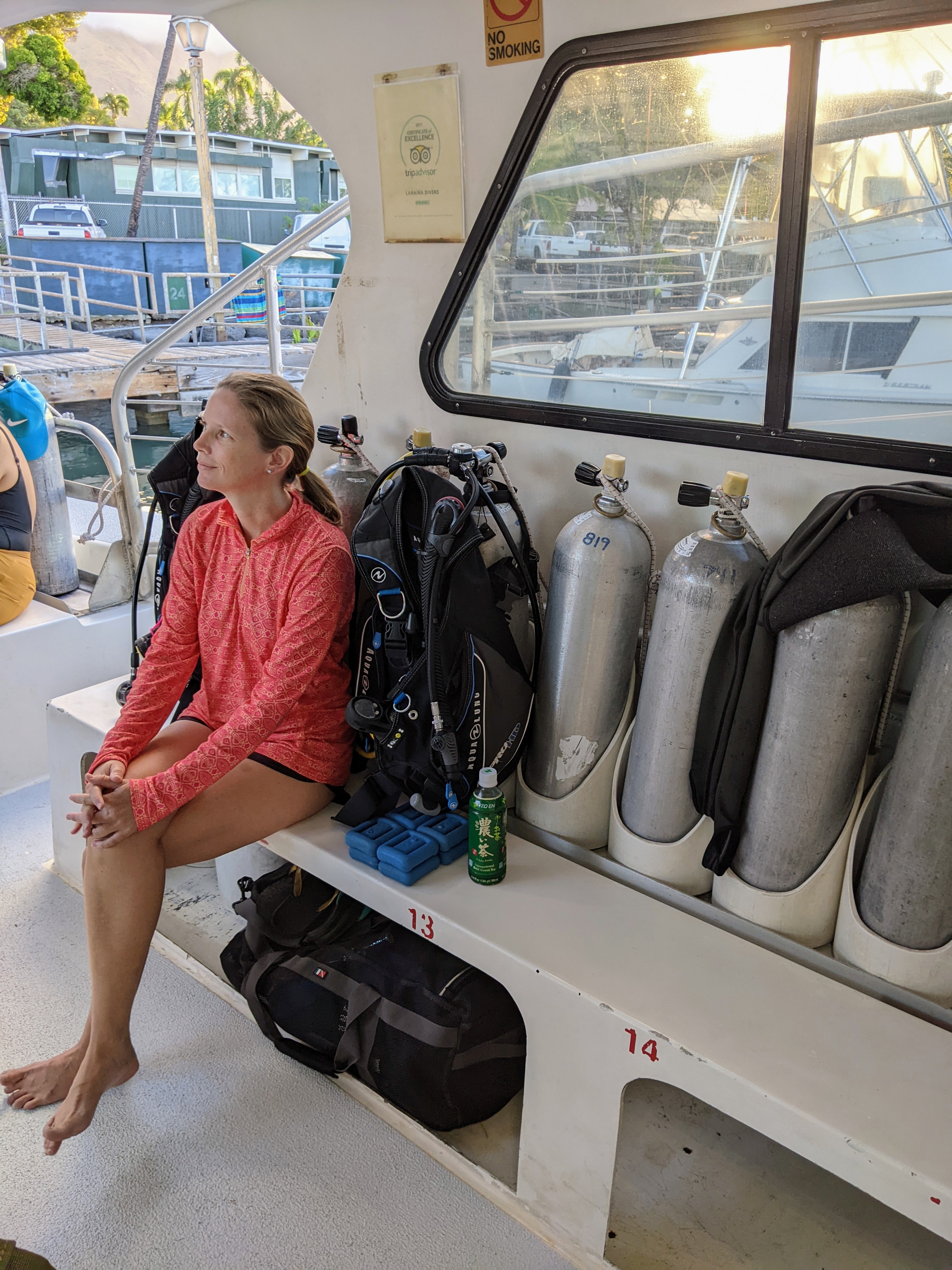 Another seasonal sight are the humpback whales that migrate from the North Pacific to rear their young and wait for the sea ice to come and go in the arctic. On a recent weekend trip to Maui, we spotted our first few whales of the winter from the boat on our way back from diving the “Cathedrals” of Lanai.