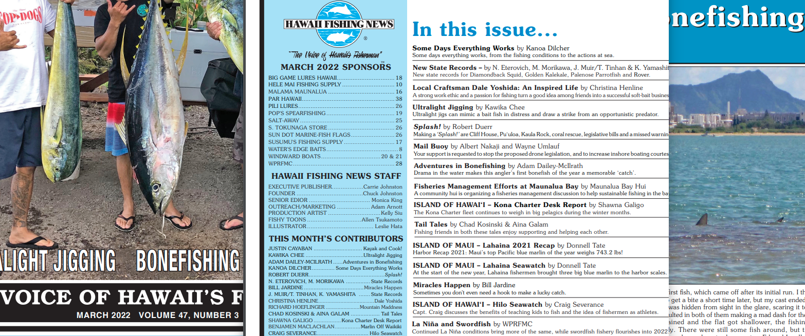 After it all went down, Ed and I headed back to the ramp. Chris was already rinsing his boat, and his father, Stan Wright, stopped by to talk story. Stan was a host of Let’s Go Fishing, one of Hawaii’s staple television fishing shows, so he is pretty dialed into the local fishing scene. After I told him about my day, he suggested I submit a piece to the Hawaii Fishing News, our statewide, monthly periodical for all things fishing. I had intended to use the story for a blog post, but I deferred to Stan and sent it to HFN.