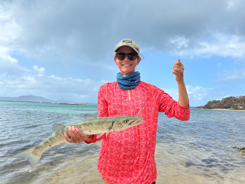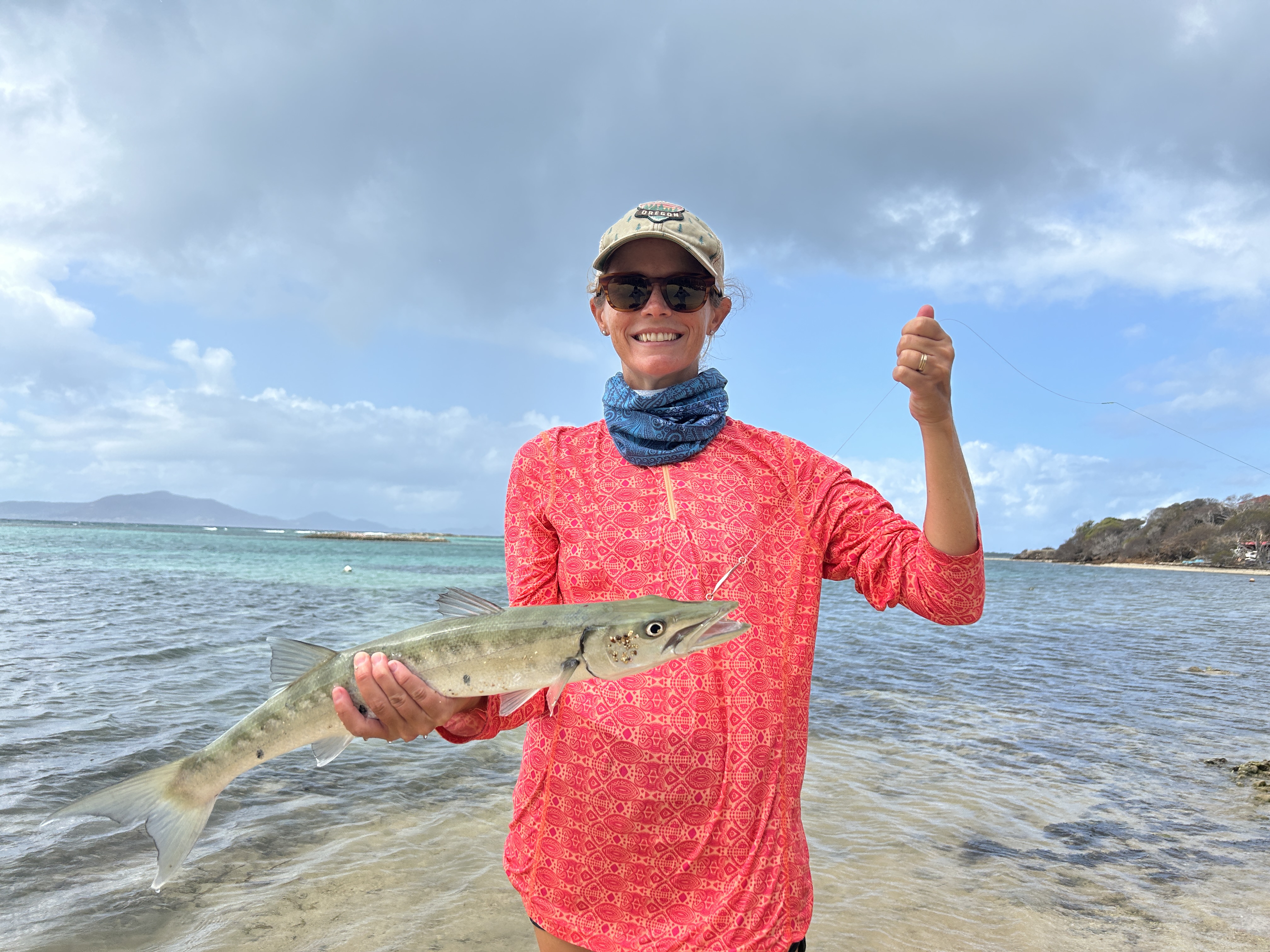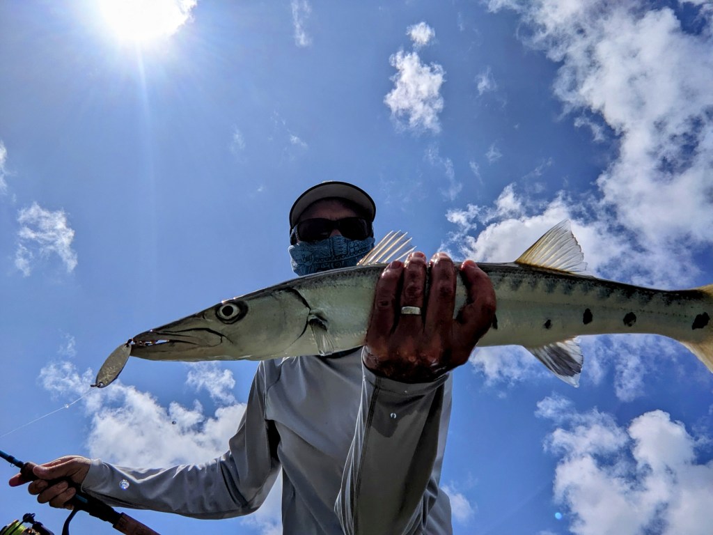 This island has a bit of a flatter profile than most of the other nearby islands and so it has some some flats and a substantial number of mangroves. Where you have mangroves, you’ll often find barracuda. In fact, we found the barracuda last time we visited, but I neglected to bring heavy leader and so we lost several fish. This time we were better prepared.