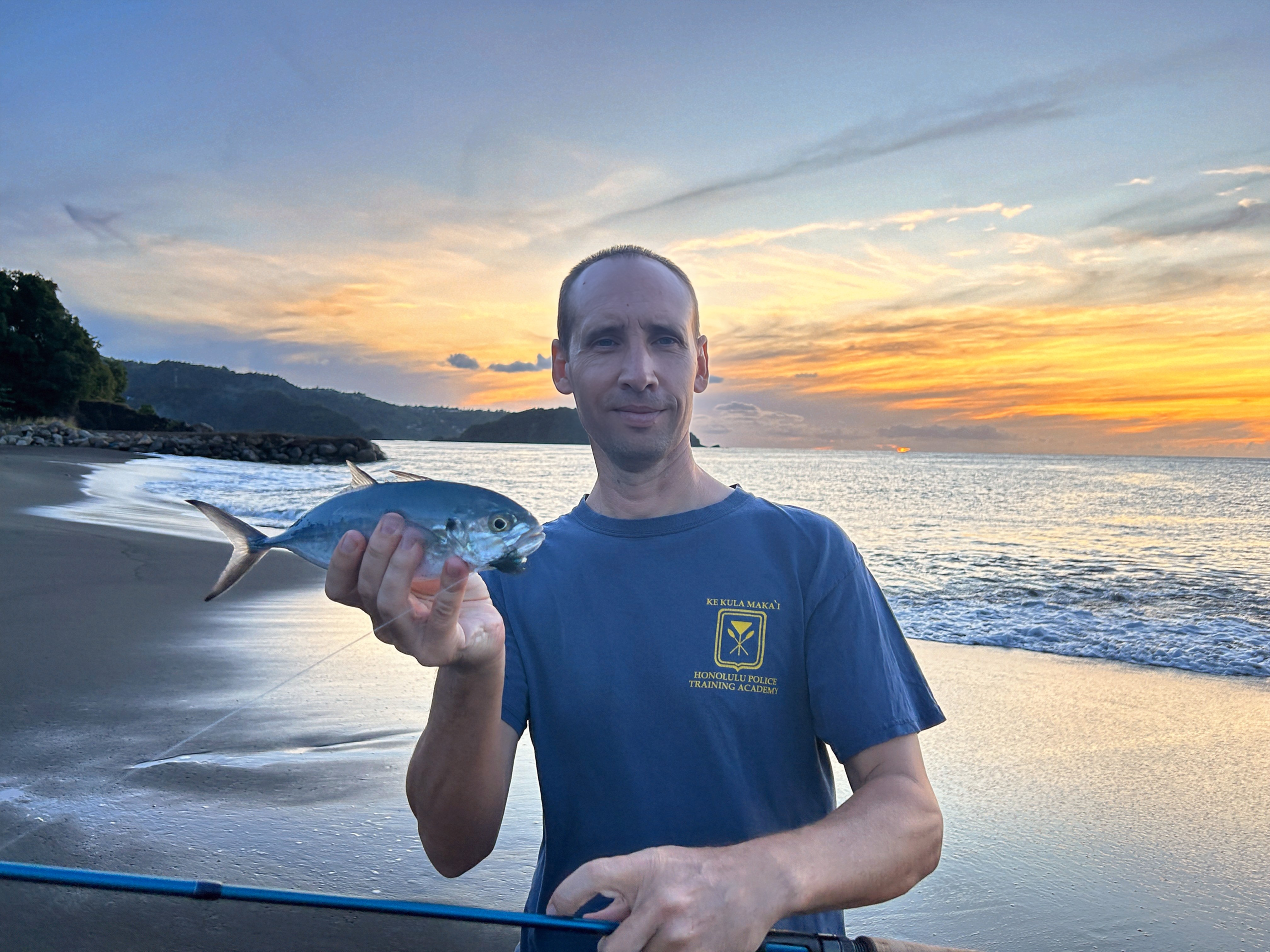 We walked to a nearby beach to watch the sunset on New Year’s Eve. I did a bit of fishing and hooked some small jacks – my last fish of 2024.