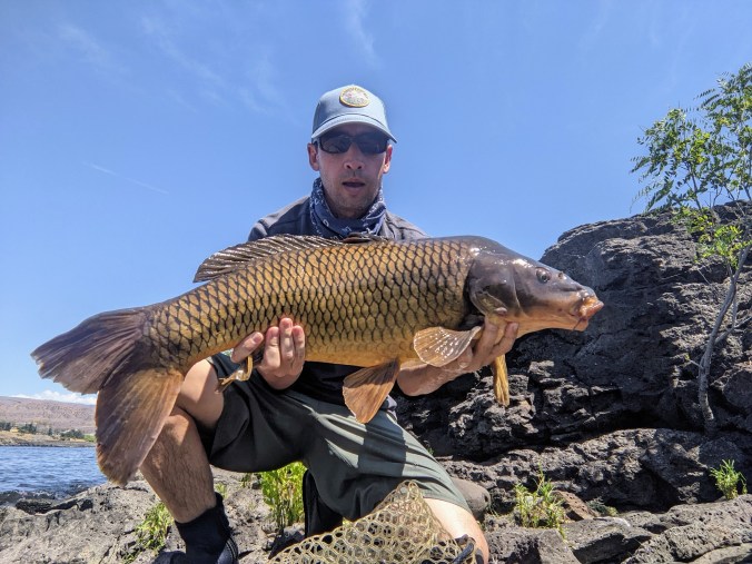 I remember this fish. I spotted it from the road, rooting on the bottom in a small bay. I clambered as quickly and quietly as I could down the rocks and managed to hook it without getting my feet wet. I also remember that the hook pulled and I lost the fish. What had me perplexed this summer was that the shoreline where I caught it, indeed most of the spots I have fished in the past, did not look like this memory.