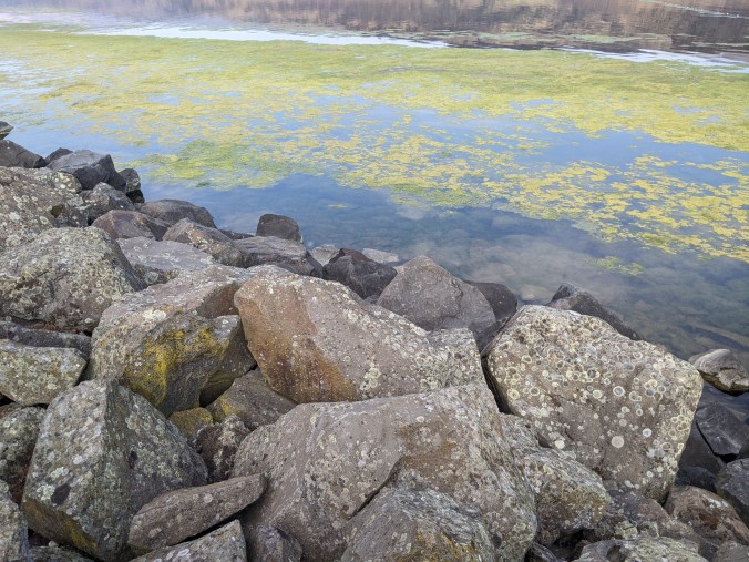 So much of my fishing time recently has been spent looking for places that have less weeds – areas with substrates of larger rocks, or areas that are regularly scoured by heavier current. I suspect that many of the islands in the river, small and large, have shorelines like this, but those are inaccessible to me for the time being. I do have a couple of shoreline spots that fit the bill. Every once in a while it all comes together.