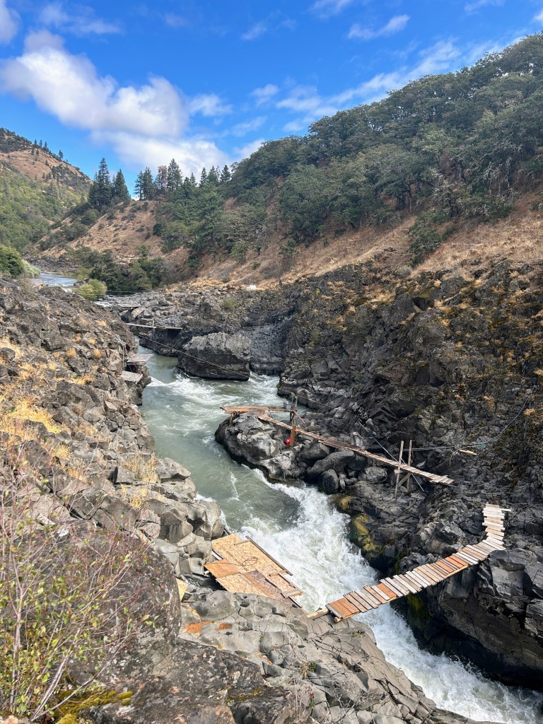 A couple of weekends back we took a walk up the Klickitat, one of the longest, free-flowing rivers in the region. As far back as humans can remember, and possibly farther than that, tribes like the the Yakama, Warm Springs, Umatilla and Nez Perce have been harvesting salmon and steelhead from the Columbia and it’s tributaries. Today, commercial fishing by the tribes is a modern affair, but on the Klickitat you can still see more traditional methods – precarious wooden platforms suspended over the rapids where fish are scooped up with long (and very heavy!) nets.